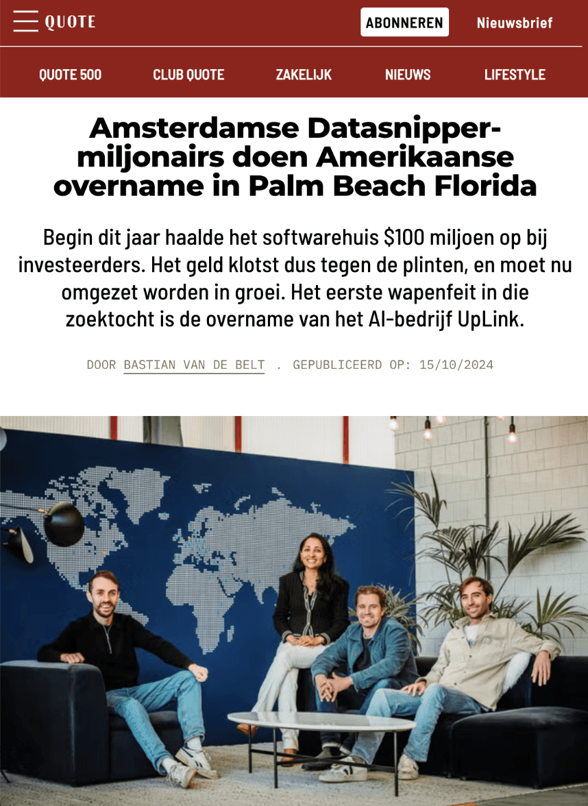 The first Dutch unicorn since 2022, a milestone for Datasnipper and a milestone for the Netherlands. It was up to us to share the story behind their $100 million funding round in Dutch media. We saw only one deserving option: frontpage of Het Financieele Dagblad (Dutch FT-equivalent). The rest is history.
